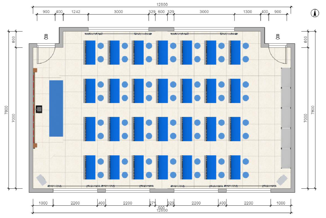 4 最后排座椅之后应设横向疏散走道;自最后排实验桌后沿至后墙面或固定家具的净距不应小于1.2m